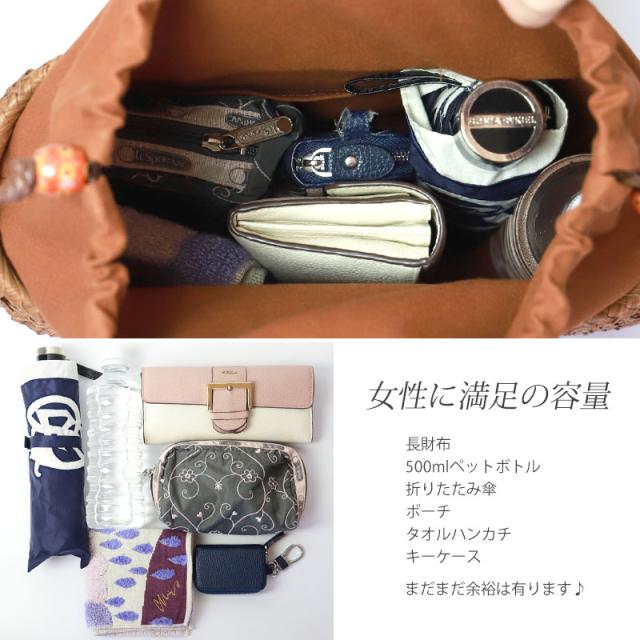 必要なものがしっかり収まる程よいサイズ感。自然素材の可愛いシルエットで、マチも十分にあるので普段使いに大活躍のファッションアイテムです。