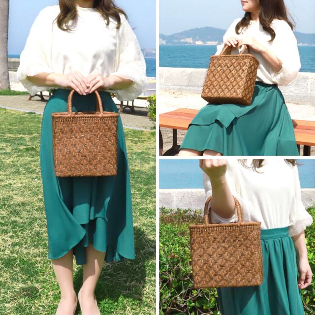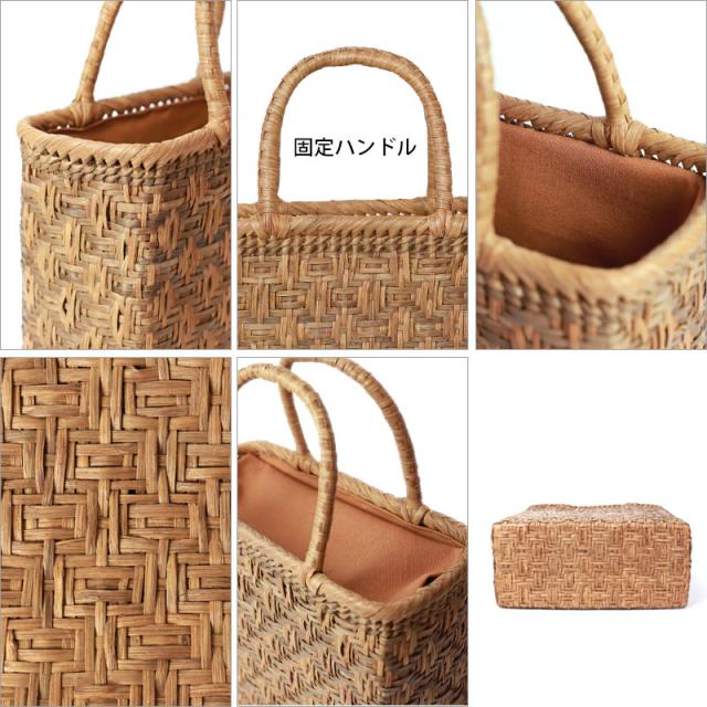 | 仕様 | 連続枡網代編み 固定ハンドル 柿渋染め内布(かぶせ付 内ポケット付き) 取り扱い説明書 保証書付き |
