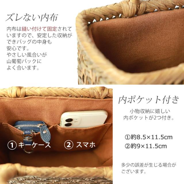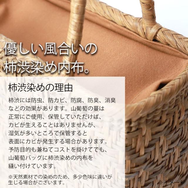 | 素材 | 鞄本体:天然山葡萄蔓 内布:綿100%(柿渋染め) |
