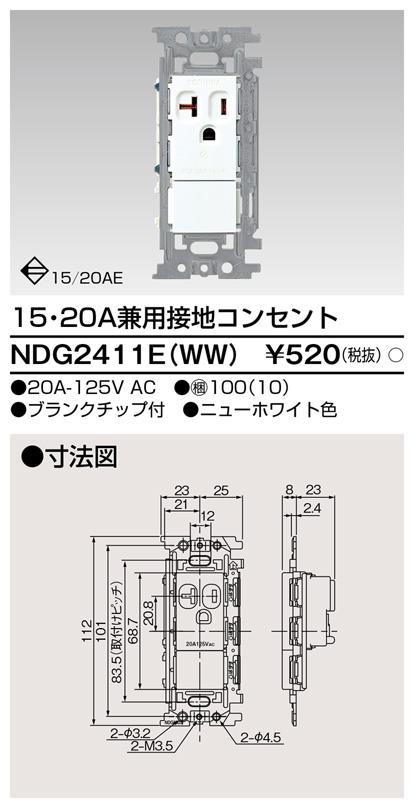 Я東芝 電設資材【NDG2411E(WW)】E’s配線器具 15・20A兼用接地コンセント ブランクチップ付 ニューホワイト色