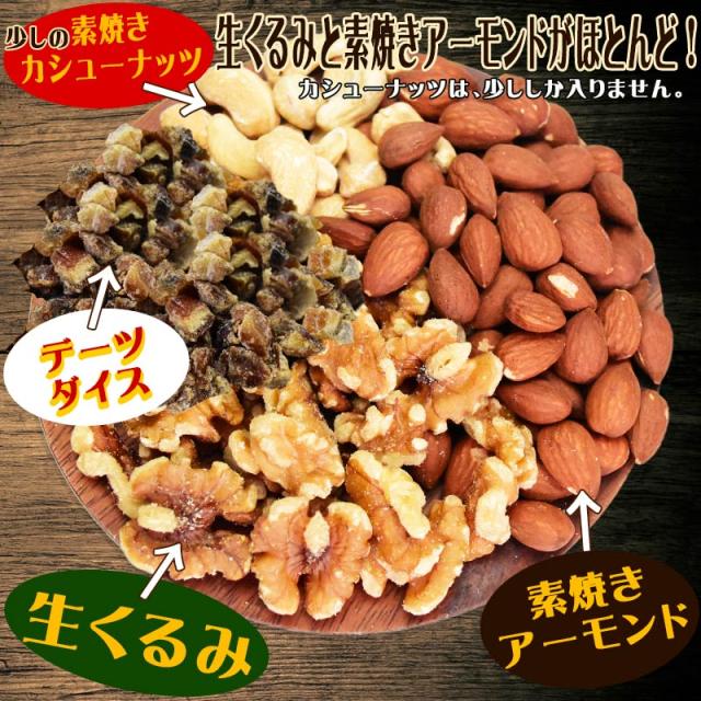 デーツダイス入り ミックスナッツ 500g 無添加 4種ミックス 素焼きアーモンド 生 くるみ 少しの ロースト カシューナッツ デーツ メール便限定 送料無料