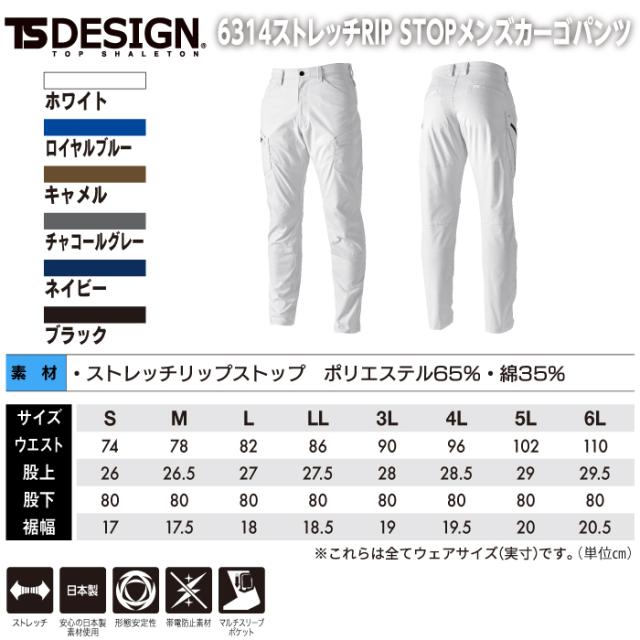 藤和 TSDESIGN 作業服 オールシーズン 6314 ストレッチRIPSTOPメンズカーゴパンツ 5L-6L