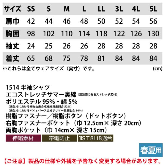 ジーベック XEBEC 作業服 春夏用 1512 半袖シャツ 4L-5L 作業着