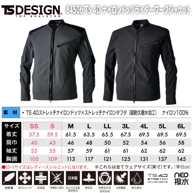 藤和 TSDESIGN 作業服 春夏用 84506 TS4Dナイロンドッツライダーワークジャケット 3L-4L