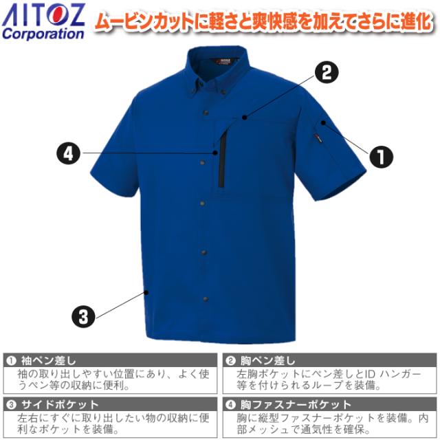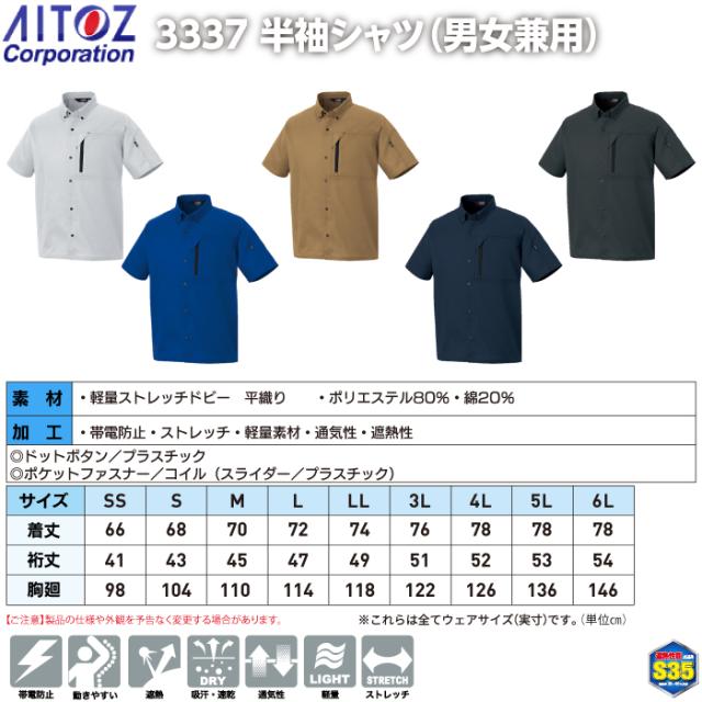 アイトス 作業服 作業着 Aitoz 春夏用 AZ-3337 半袖シャツ(男女兼用) 4L