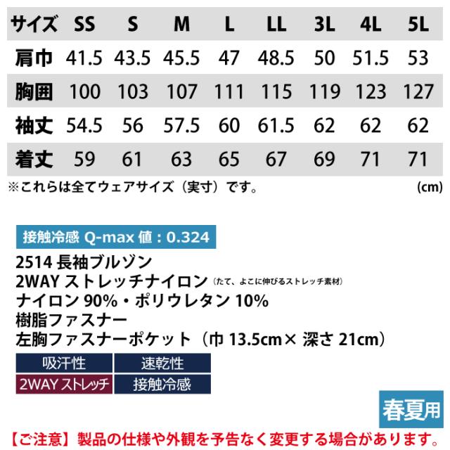 ジーベック XEBEC 作業服 春夏用 2514 長袖ブルゾン 3L 作業着