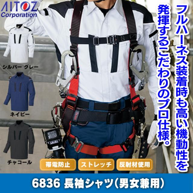 アイトス 作業服 作業着 Aitoz 春夏用 AZ-6836 長袖シャツ(男女兼用) 6L