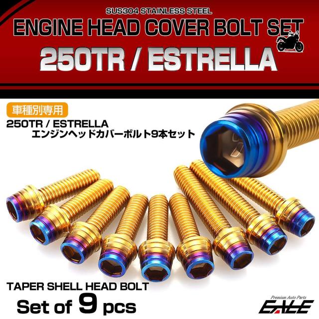 エンジンヘッドカバー ボルトセット 250TR エストレヤ 9本セット テーパーシェルヘッド カワサキ用 ゴールド&ブルー TB8457