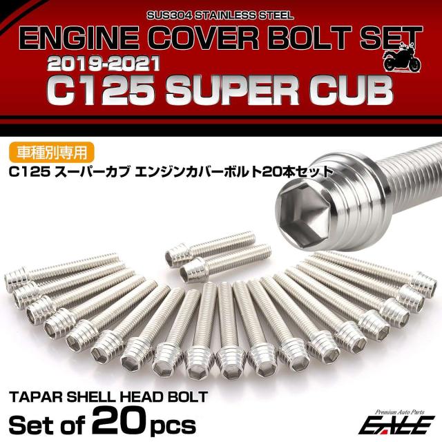エンジンカバー ボルトセット C125 スーパーカブ 2019-2021年 20本セット テーパーシェルヘッド ホンダ用 シルバー TB6726