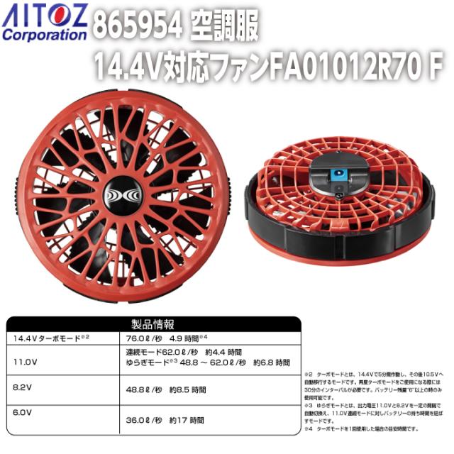 空調服 アイトス Aitoz AZ-865955 空調服14.4V対応ファンFA01012R70 F 春夏用 熱中症 レジャー アウトドア スポーツ