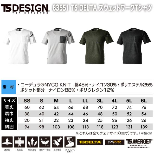 藤和 TSDESIGN 作業服 オールシーズン 8655 TSDELTAコーデュラワークTシャツ 3L-4L