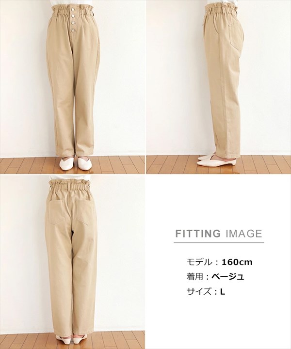 送料無料 コットンツイル ハイウエスト ギャザー ストレートパンツ ウエストゴム レディース チノ サイドポケット ナチュラル S/M/Lサイズ 春 夏 秋 冬 オフィスカジュアル かわいい お出かけ デート 楽ちん ゆったり Ladies 20代 30代 40代