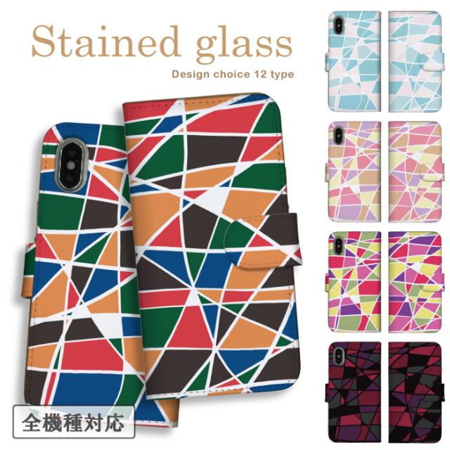 スマホケース AQUOS R Compact 701SH アクオス R コンパクト 701SH ケース カバー 手帳型 かわいい ステンドグラス おしゃれ カラフル クール 格子 人気 アート 送料無料