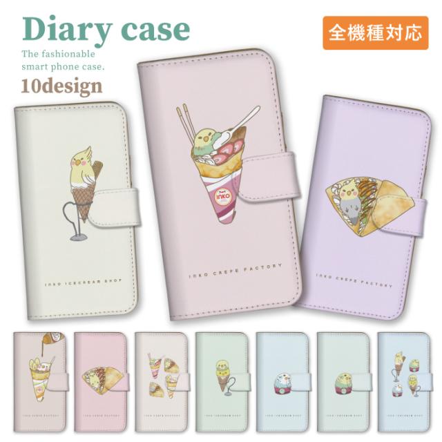 スマホケース らくらくフォン me F-03K らくらくスマホ me F-03K ケース カバー 手帳型 インコ インコアイス クレープ セキセイインコ オカメインコ コザクラインコ 送料無料