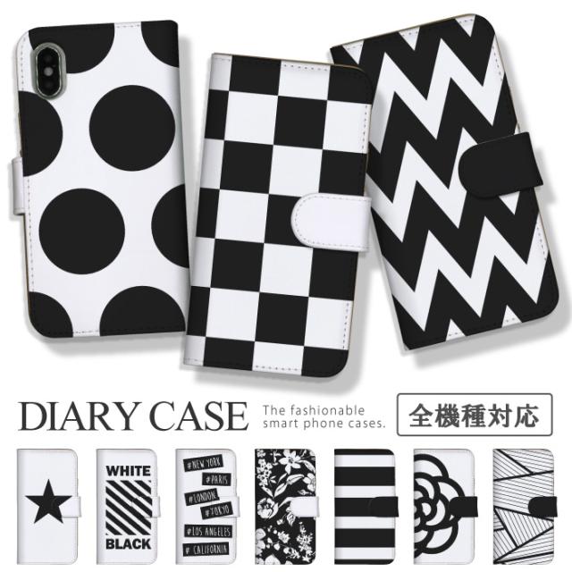 スマホケース LG style3 L-41A エルジー スタイル3 L-41A ケース カバー 手帳型 ドット ストライプ 星 モノクロ ホワイト ブラック 白黒 送料無料