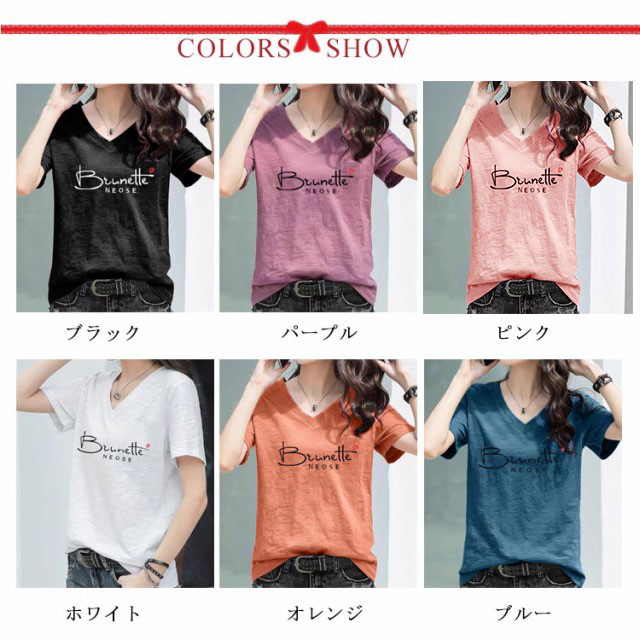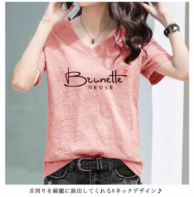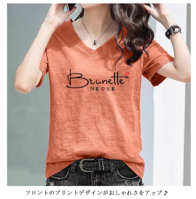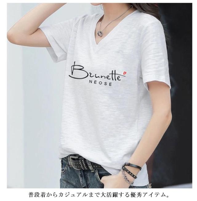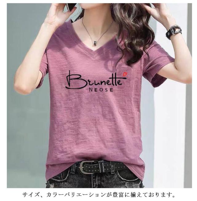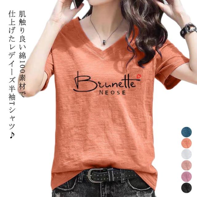 半袖Tシャツ レディース 半袖tシャツ カットソー トップス 半袖 tシャツ Vネック ゆったり 無地 英字 薄手 綿100 コットン 柔らか 大きいサイズ シンプル カジュアル 夏 送料無料