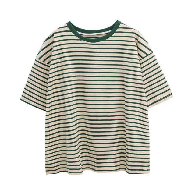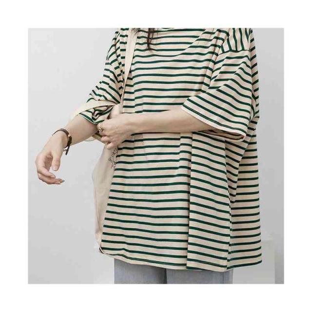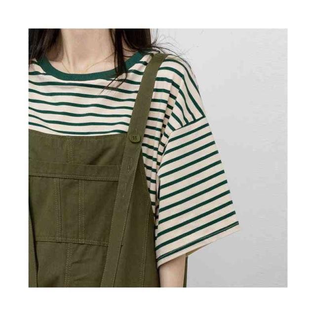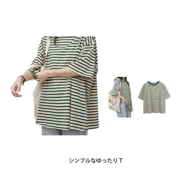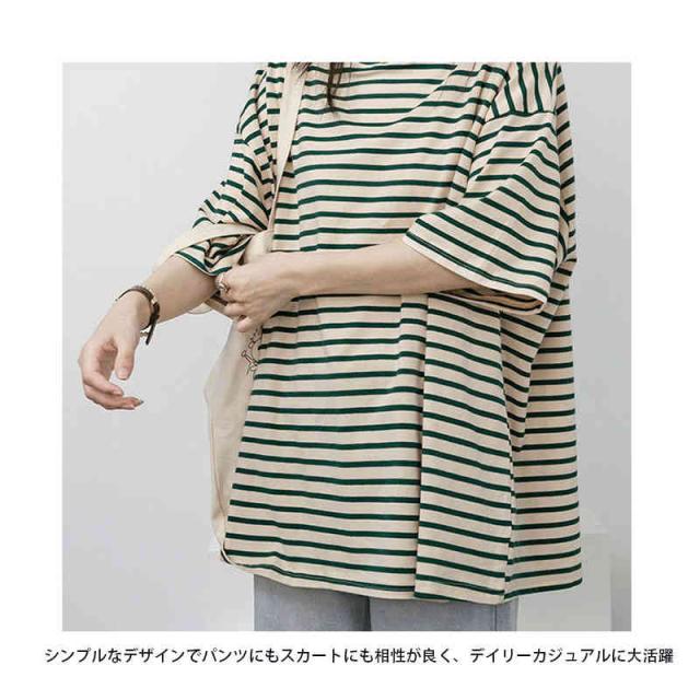 トップス レディース Tシャツ カットソー 半袖 無地 ボーダー 綿 コットン オーバーサイズ 夏 ゆるTシャツ クルーネック 体型カバー 五分袖 ミドル丈 薄手