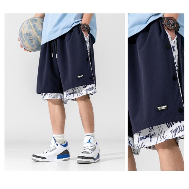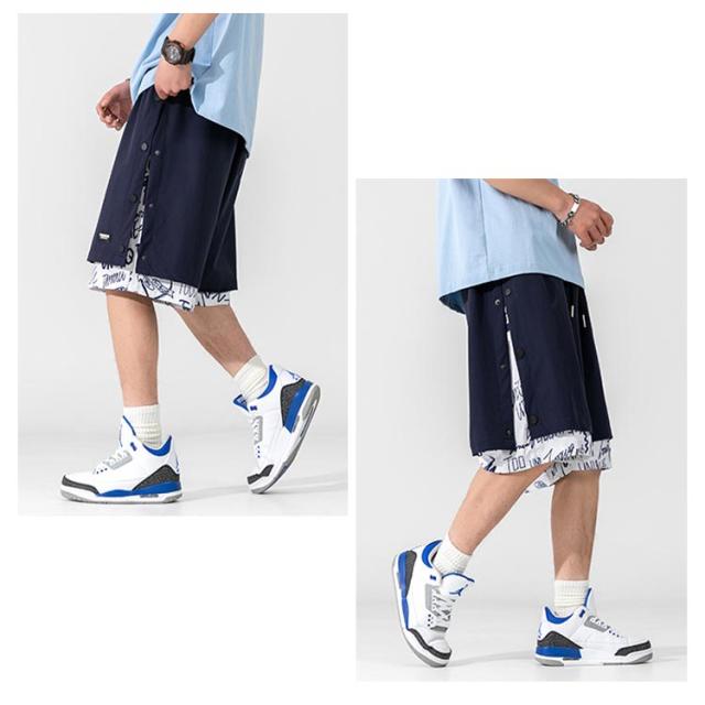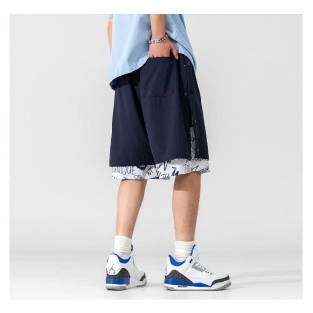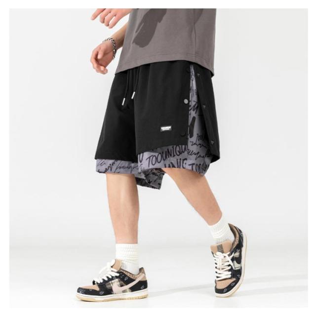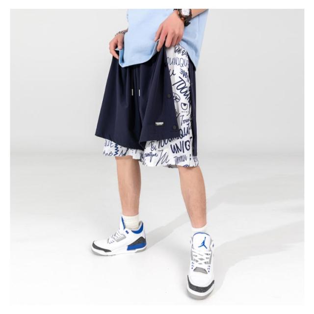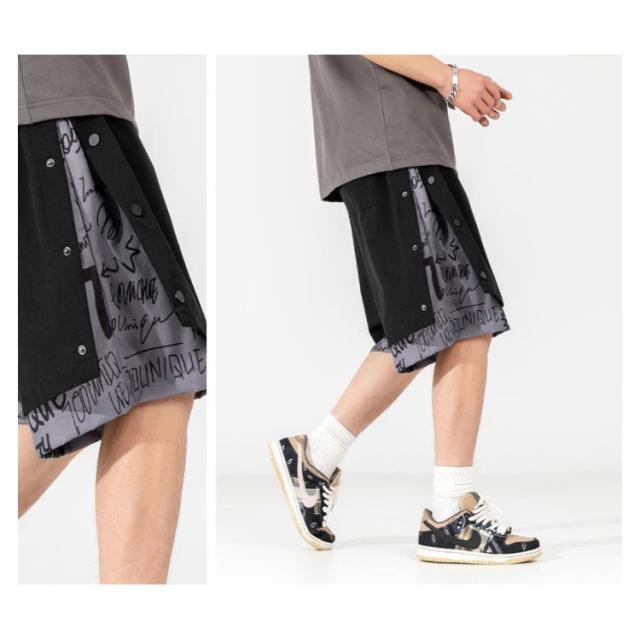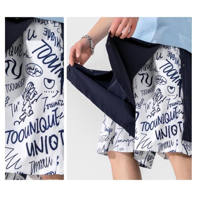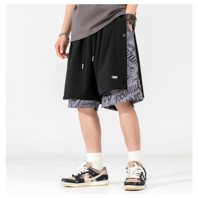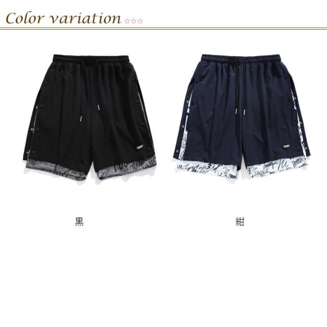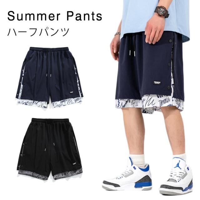 サイドボタン ショートパンツ メンズ 春 夏 落書き風 ハーフパンツ 5分丈 パンツ 半ズボン 短パン 運動用 スポーツ ルームウェア 部屋着 夏男 夏服 送料無料
