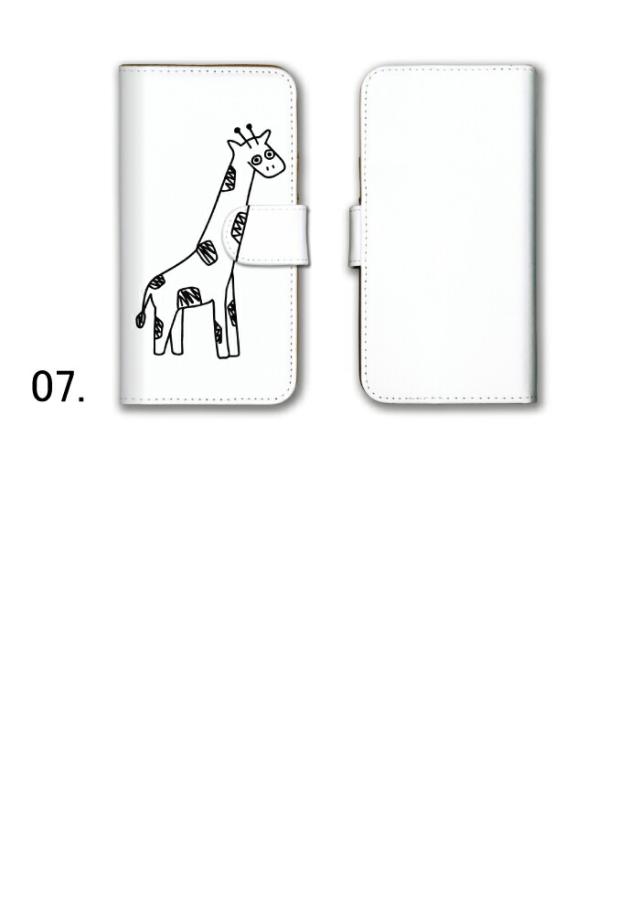 スマホケース iPhone 12 アイフォン12 ケース カバー 手帳型 モノクロ イラスト アニマル 動物 ゾウ 小鳥 キリン シンプル かわいい 送料無料