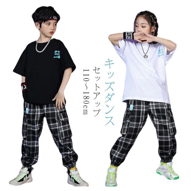 キッズ ダンス 衣装 キッズダンス衣装 セットアップ チェック 綿 半袖tシャツ 子供 サルエルパンツ ジャージ ジュニア ダンストップス キッズダンス 衣装 送料無料