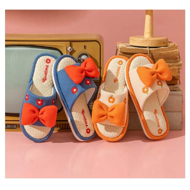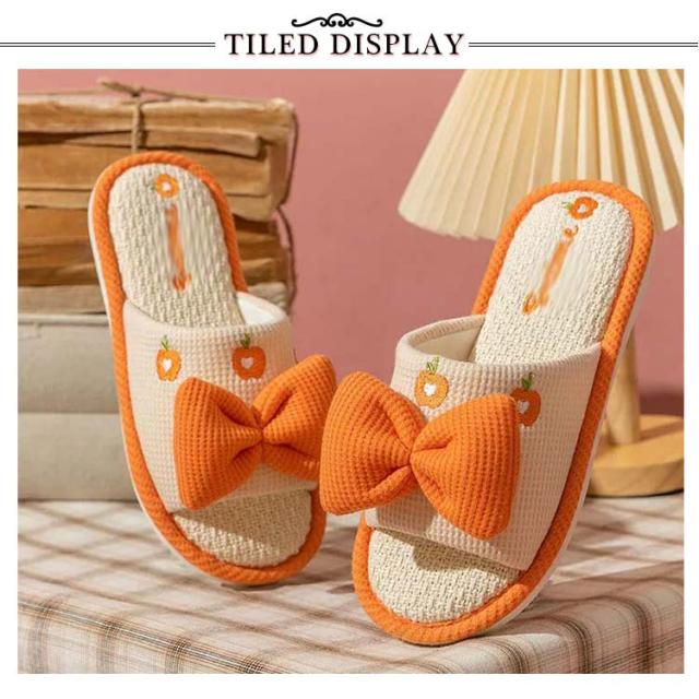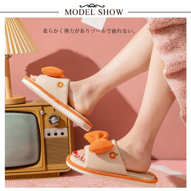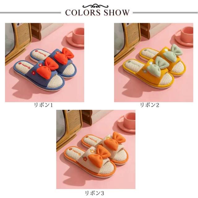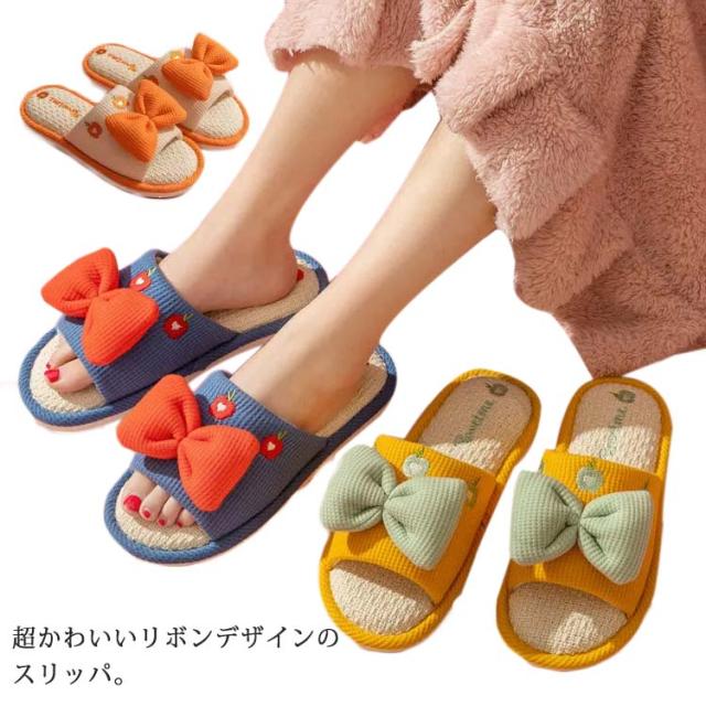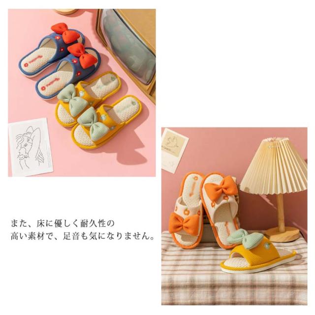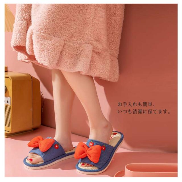 かわいいリボンデザイン 厚底 前開きスリッパ ルームシューズ レディース 室内履き 通気性 夏 春 蒸れ 疲れない リラックス 抗菌 防臭 静音 23.0-25.5cm