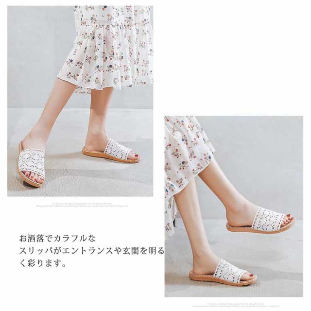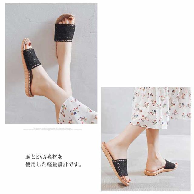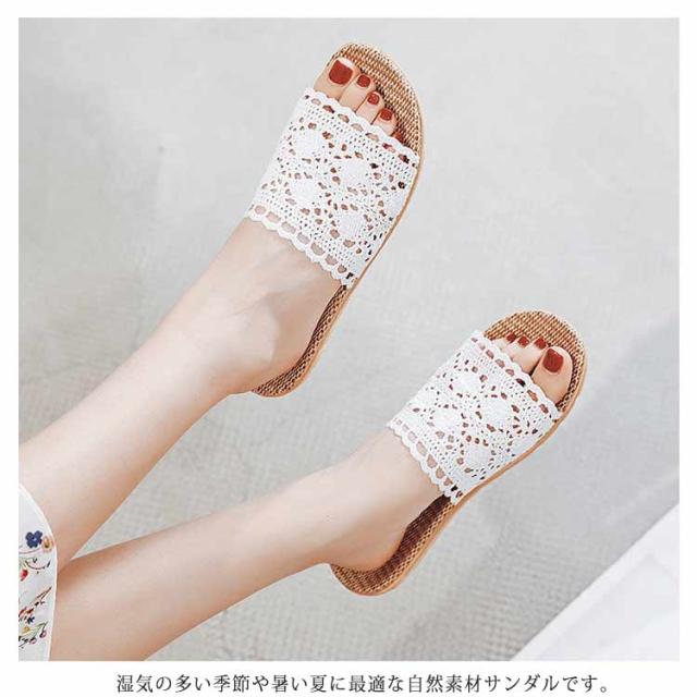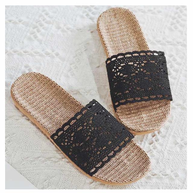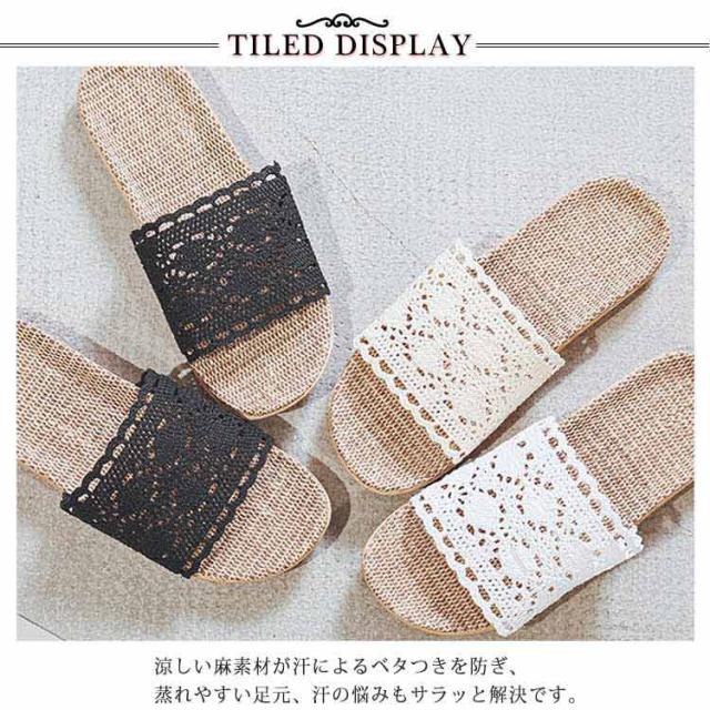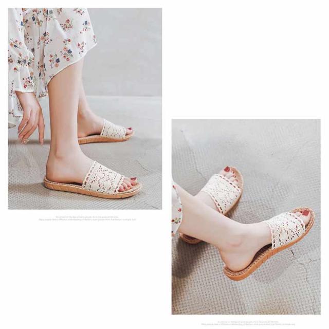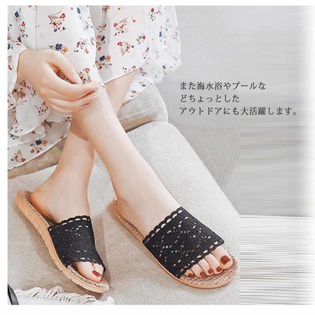 かぎ針編みレース スリッパ おしゃれ 麻 室内 夏用 涼しい 春用 ルームシューズ 室内履き 部屋用 オールシーズン 軽い 自宅用 ベランダ用 通気性 ナチュラル 亜麻 サンダル 涼しい 軽量 ギフト 22.5-28cm 送料無料