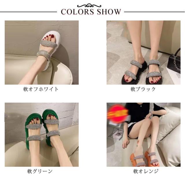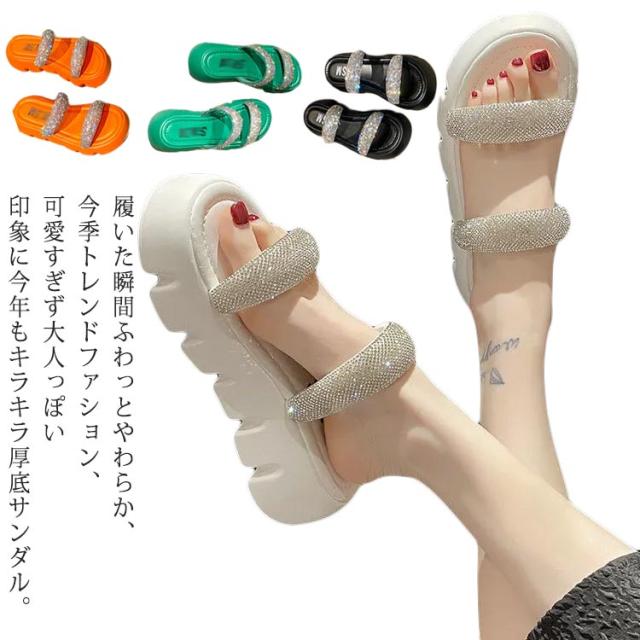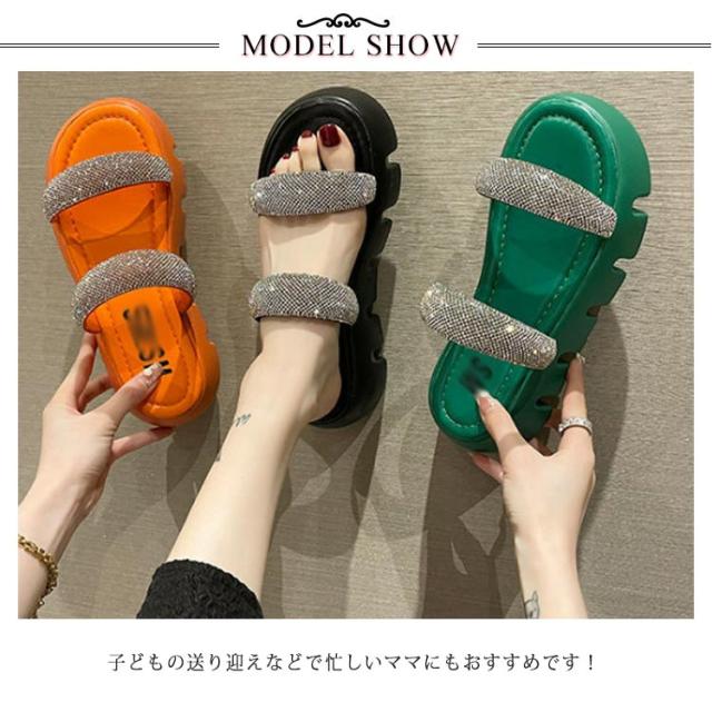 | 履いた瞬間ふわっとやわらか、今季トレンドファション、可愛すぎず大人っぽい印象に今年もキラキラ厚底サンダル。 子どもの送り迎えなどで忙しいママにもおすすめです! カジュアルからキレイめコーディネートまで幅広く使えます。 滑りにくい、歩きやすく、長時間履いても疲れにくいです。 ささっと履けて、コンビニなどちょっとお出かけのシーズンでもすぐにキマる。 熱い砂浜やプールサイドなどを歩く時にもおすすめ! お洒落シンプルな仕上がりになっておりますので、ファッションとして普段履きとしても十分に使えます。 | |