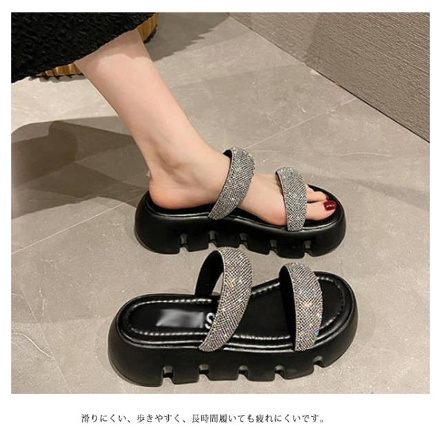 ダブルキラキラベルト サンダル レディース 厚底シューズ ビーチサンダル 近所履き 疲れにくい 耐水 速乾 軽量 かかとなし ベランダ レジャー用 アウトドア おしゃれ かわいい シンプル カジュアル 22.5-25.0cm