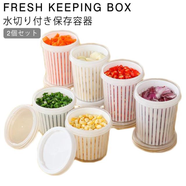 冷蔵庫 収納ケース 食材 収納ボックス 2個セット 野菜 保存容器 水切り付き 二層 野菜 密封キーパー 密閉ボックス 排水 ミニ保存容器 ニンニク 大蒜 玉ねぎ 生姜 唐辛子 玉米の粒 収納ケース 密封 食品 収納ボックス 蓋付き 透明 省スペース 野菜 保存 水切り