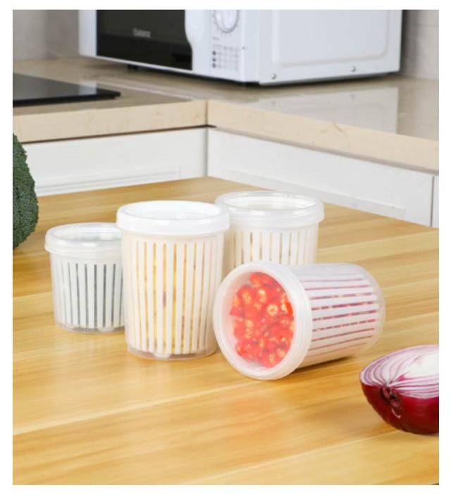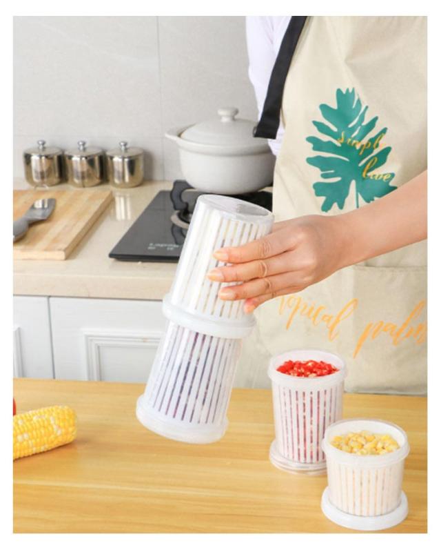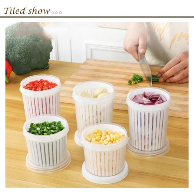 | 【商品名】水切り付き保存容器 【素材】 高品質の食品グレードの安全PP素材 【サイズ】小:8*9cm/約300ml 大:9*11.5cm/約450ml 【特徴】大蒜、たまねぎ、生姜や玉米の粒・キャベツなどを、洗って水切りしそのまま保存できる、便利な保存容器です。 水切り付き★水を素早く排出し、食品の保存時間を延長することができます。 外層は水を貯蔵できます。食材から落ちる水滴から食材の鮮度を守ってくれます。 蓋も付属しています。漏れにくく、効果的に臭いを防ぎ、食品を乾燥させてオリジナルに保つことができます。 透明度が高い容器で中身がとてもわかりやすいです。 積み重ねて使用できるので、収納場所も無駄なく使うことができます。 | |