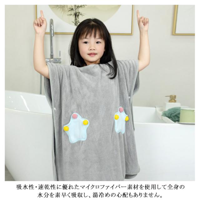 | オシャレで可愛いフード付きキッズバスローブ 赤ちゃんを包み込むだけで簡単に素早く水分を吸収してくれる!フードもかぶれば髪もすぐ乾きます。 吸水性・速乾性に優れたマイクロファイバー素材を使用して全身の水分を素早く吸収し、湯冷めの心配もありません。 速乾性もあるので雨の多い時期や天気の悪い日などにも便利です。 スナップボタン付きで簡単に固定でき、動き回っても落ちないです。 丈夫で丁寧な縫製で長くご愛用いただけます。 | |