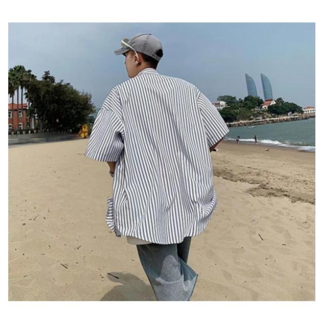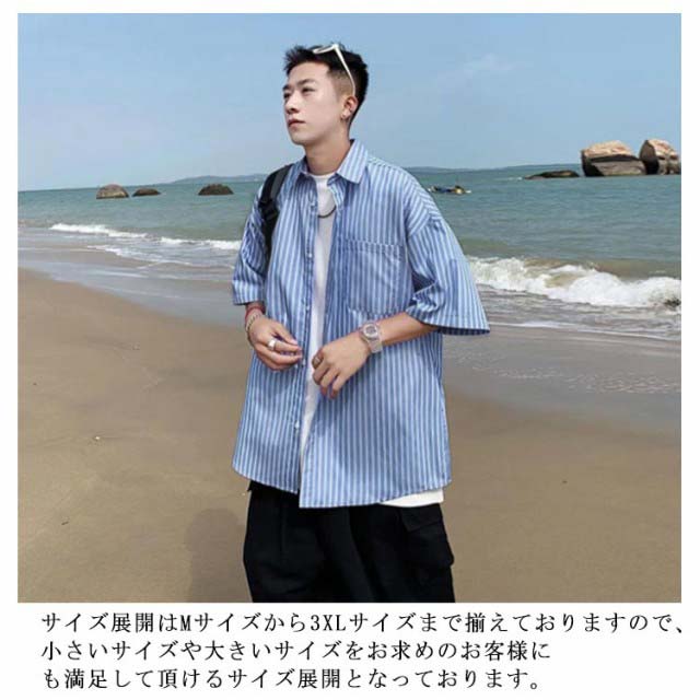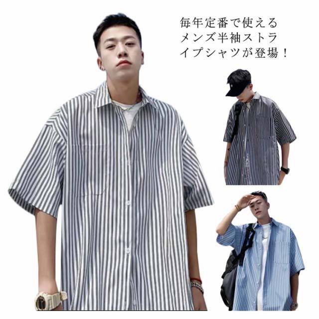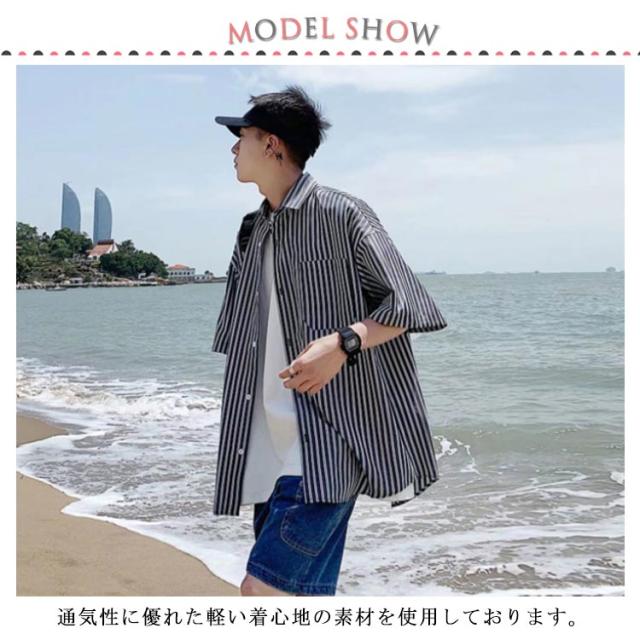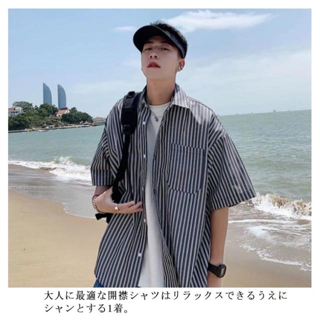 カジュアルシャツ メンズ 半袖シャツ 送料無料 ストライプ柄 開襟シャツ 夏服 シャツ ゆったり 大きいサイズ おしゃれ サーフ系 リゾート 父の日 プレゼント