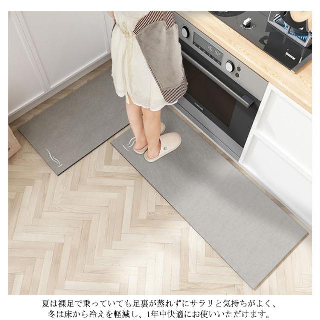 | 料理時間も快適に過ごせる吸水性抜群のランチマット 浸透しない抜群の吸水性、水・油などの汚れから床を保護します。 裏面には滑り止め素材を採用しますので、フローリング上に敷いても滑りにくいので、小さなお子様やお年寄りのいるご家庭にもおすすめです。 豊富なタイプ・カラーバリエーションで自分のお好みのタイプで足元をオシャレに彩ります。 夏は裸足で乗っていても足裏が蒸れずにサラリと気持ちがよく、冬は床から冷えを軽減し、1年中快適にお使いいただけます。 | |