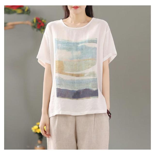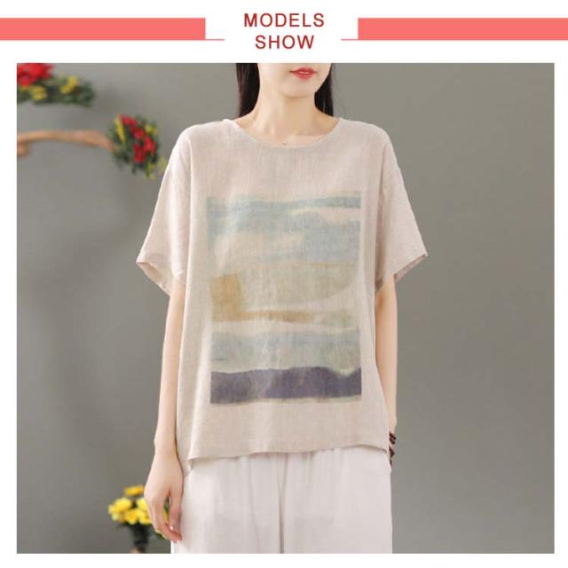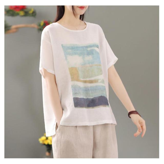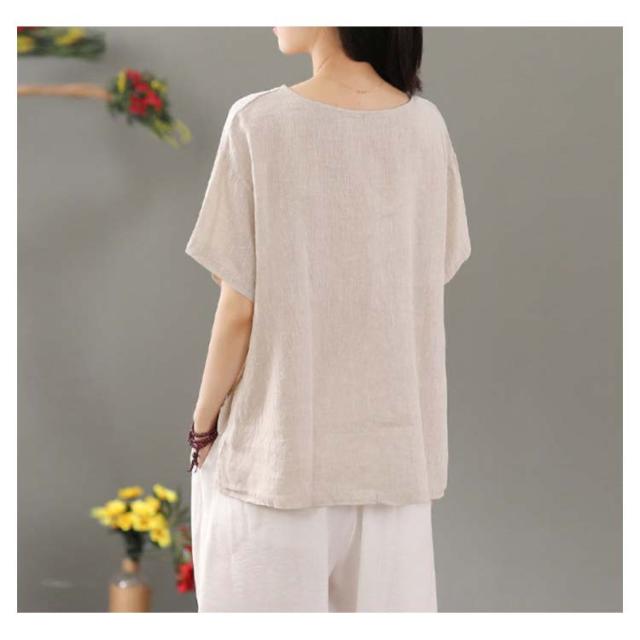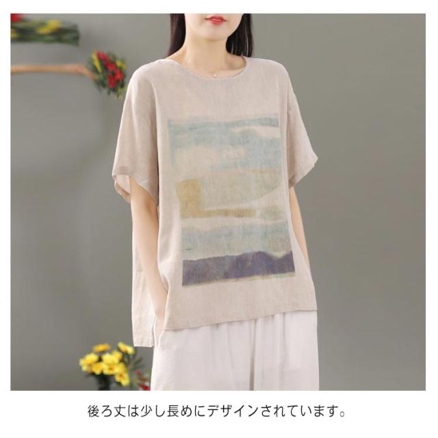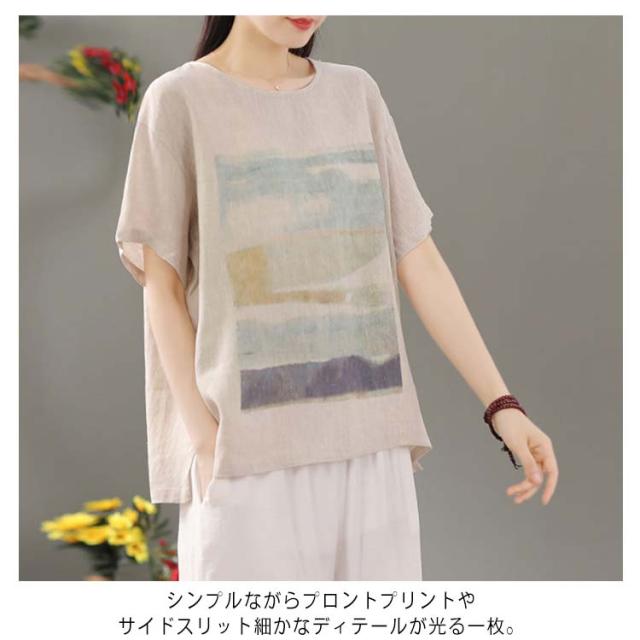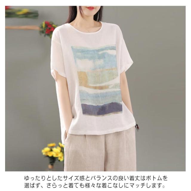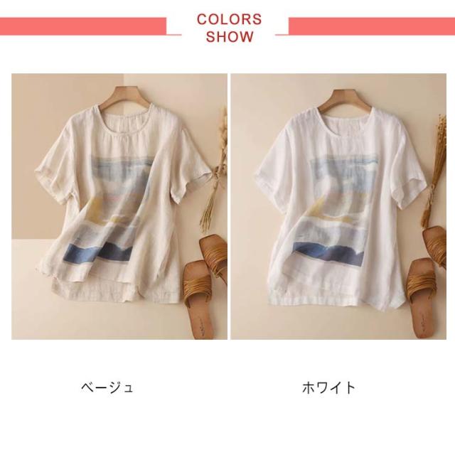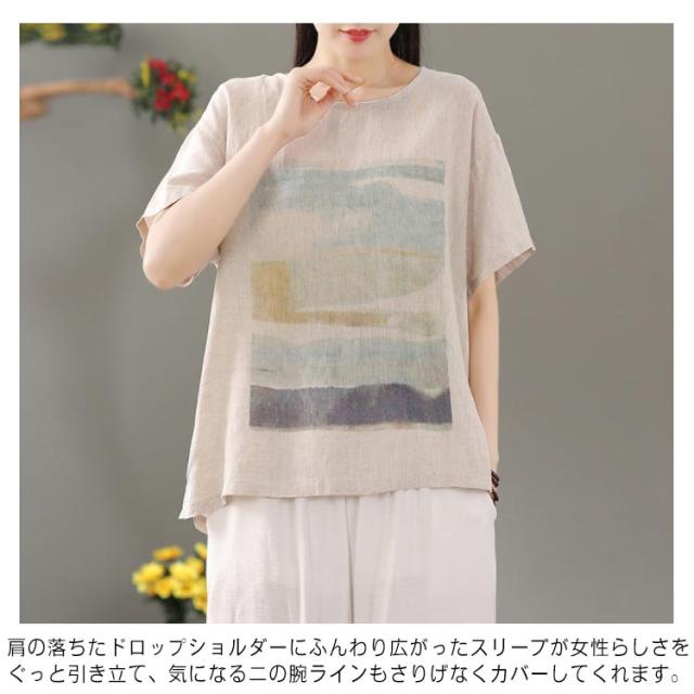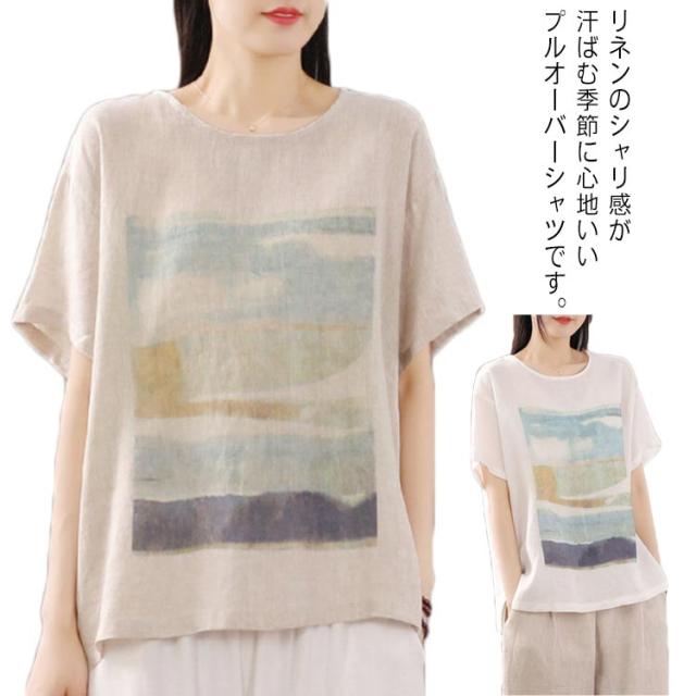 リネン シャツ ブラウス 半袖 レディース 半袖シャツブラウス 綿 コットン リネン 体型カバー ラウンドネック フリル ゆったり 可愛い きれいめ カジュアル プルオーバー