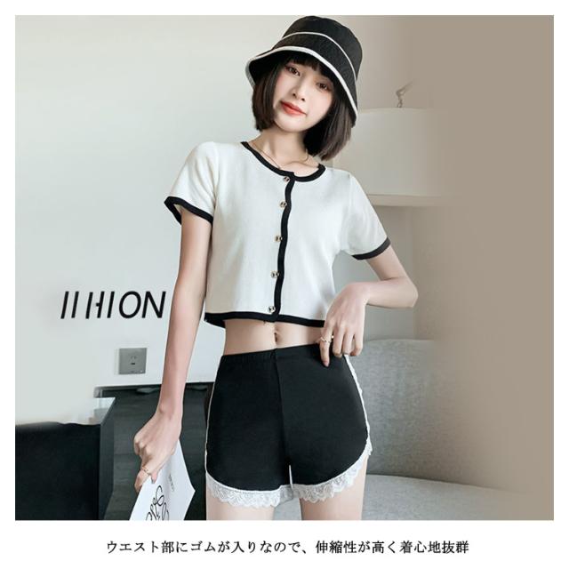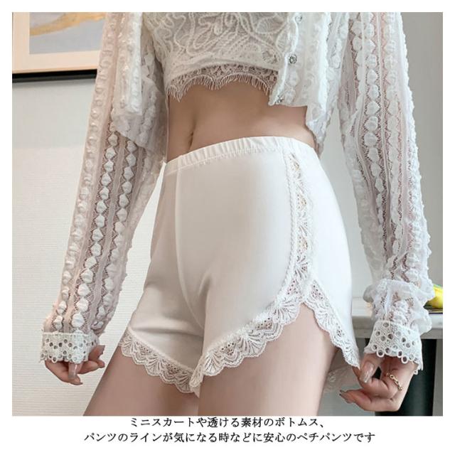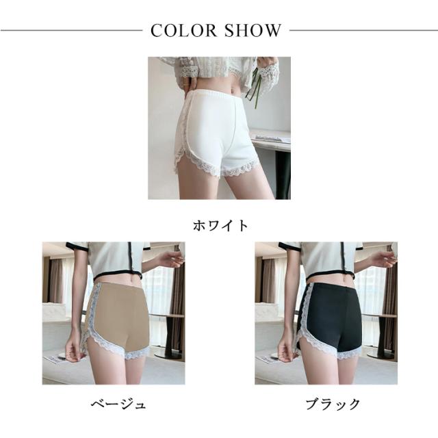 ペチパンツ レース リブ インナーパンツ ペチコート 透け 防止 レディース シンプル レース付き フリーサイズ ルームウエア 部屋着 下着 肌着 チラ見せ防止 インナー パンツ ボトムス 春夏 送料無料
