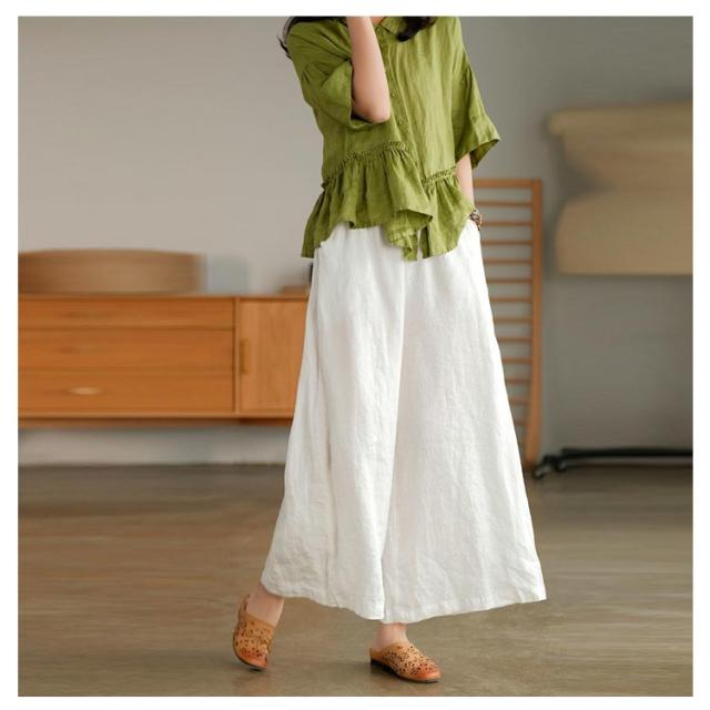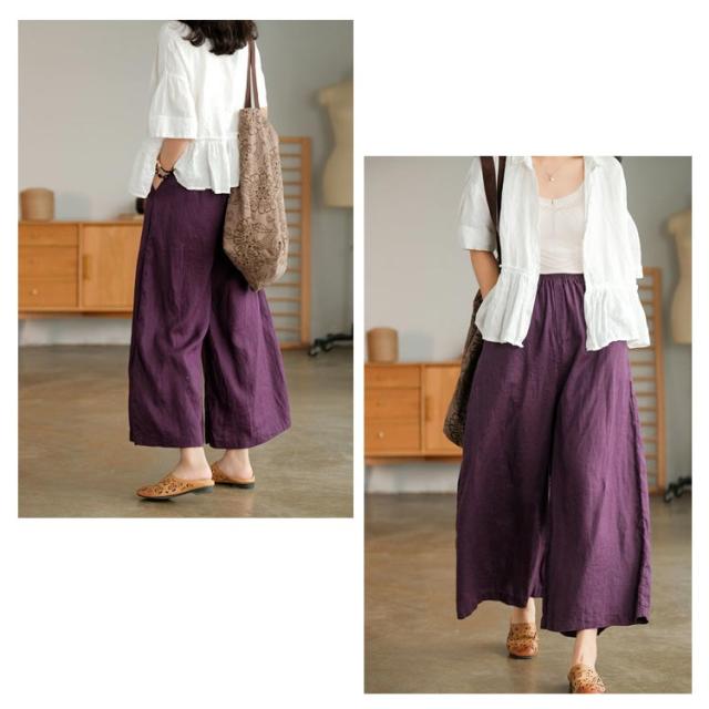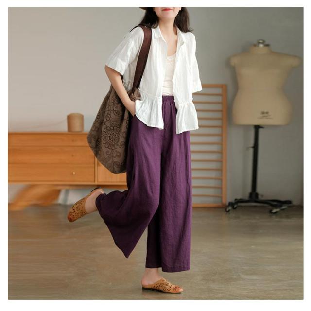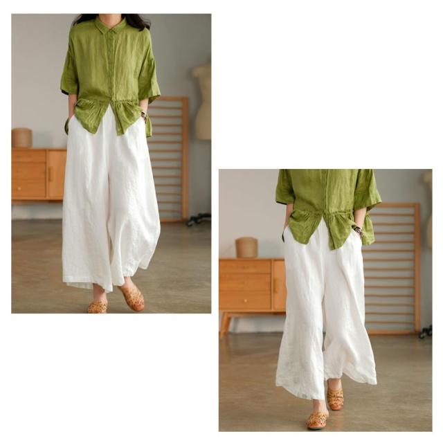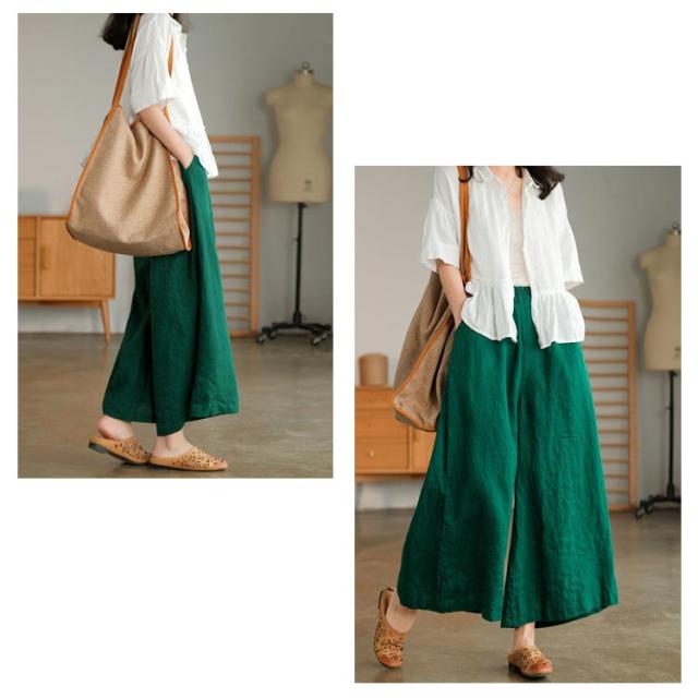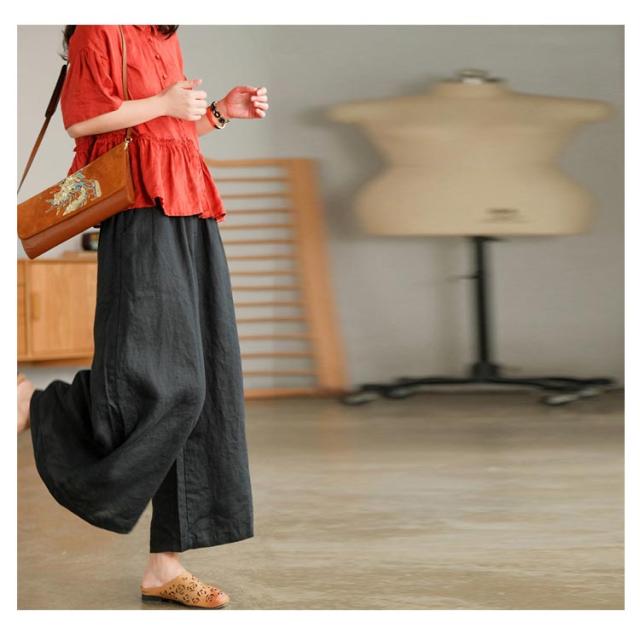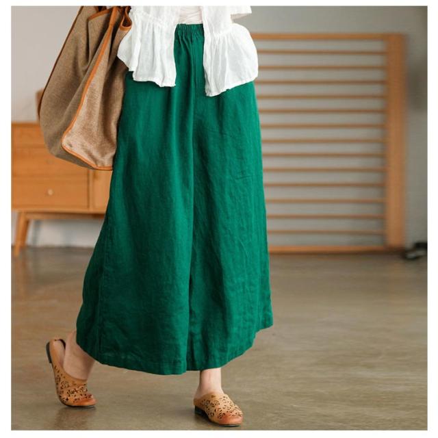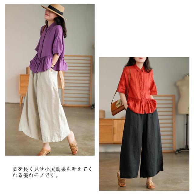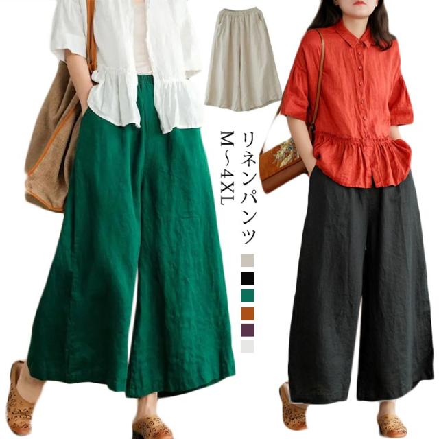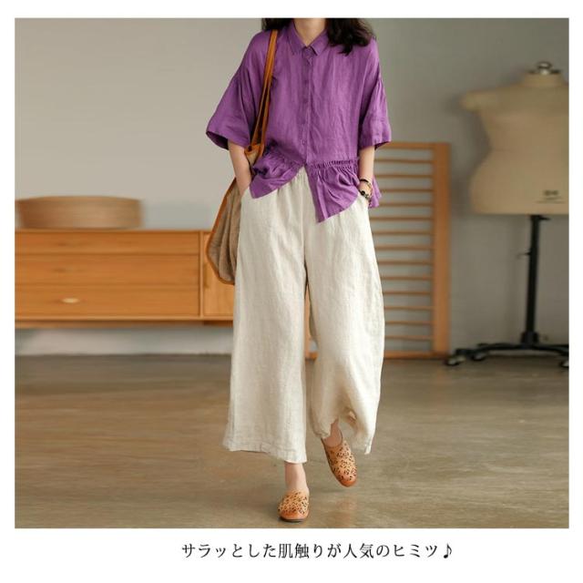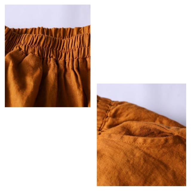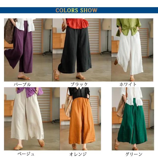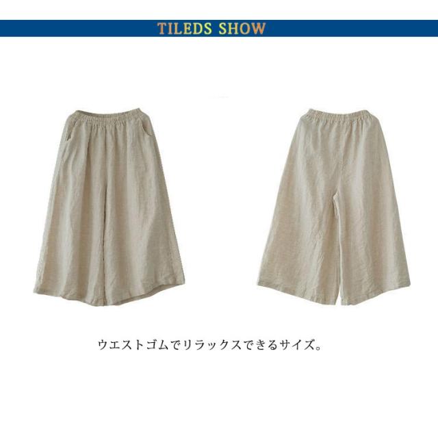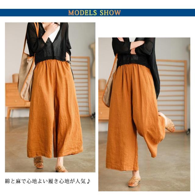 | 綿と麻で心地よい履き心地が人気♪ サラッとした肌触りが人気のヒミツ♪ ウエストゴムでリラックスできるサイズ。 脚を長く見せ小尻効果も叶えてくれる優れモノです。 | |