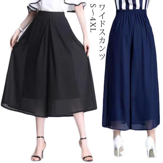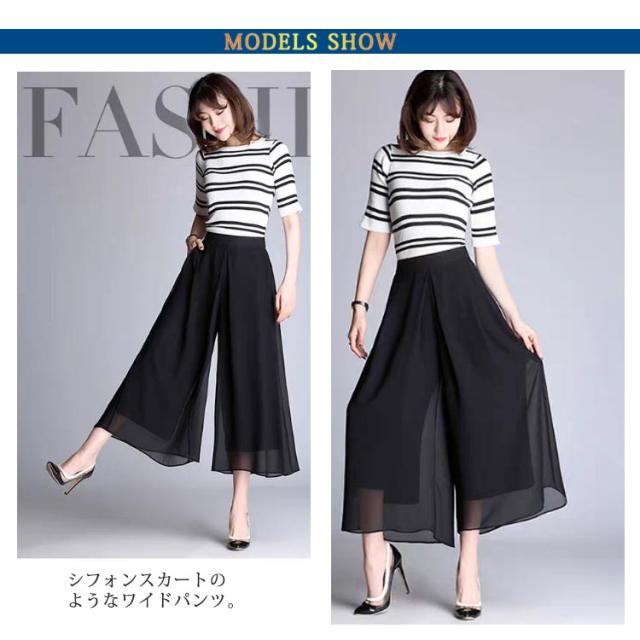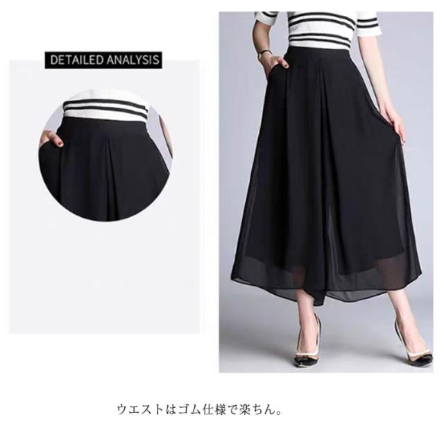 ワイドパンツ レディース スカンツ 裏地付き シフォン スカンツ 9分丈 スカーチョ レディース パンツ ロングパンツ ロング 春 春夏 夏 透け ガウチョ 体型カバー 大きいサイズ 着痩せ 40代 30代 通勤 涼しい 送料無料