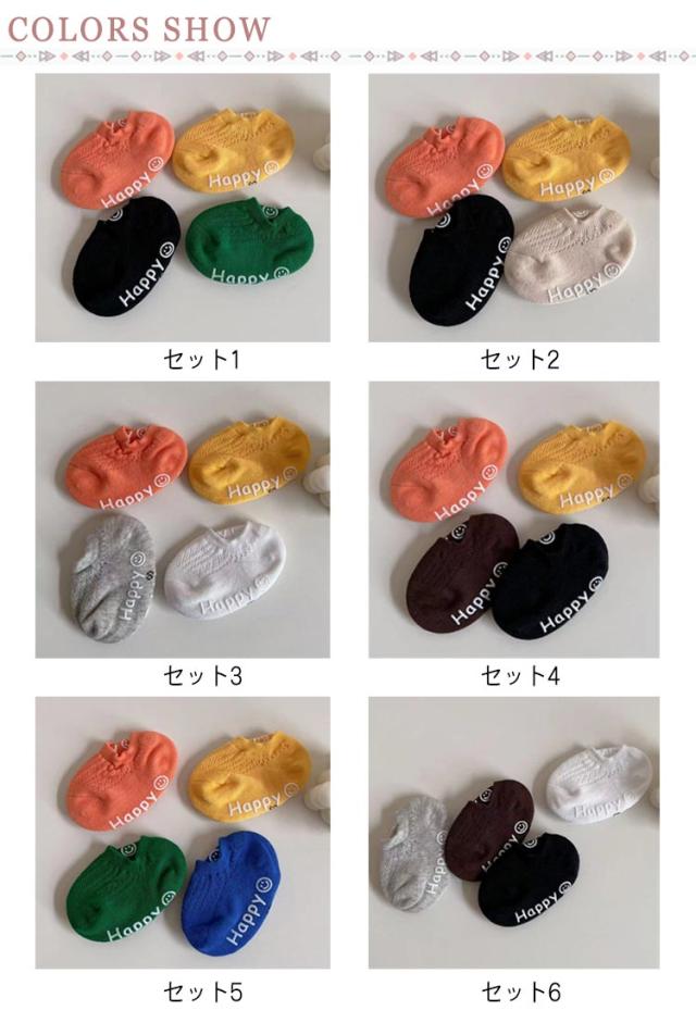 靴下 ベビー ソックス 4足組 夏 フットカバー 足裏 滑り止め付き コットン 綿 男の子 女の子 赤ちゃん くるぶしソックス アンクルソックス 新生児 キッズ 子供 保育園 幼稚園 通気性 柔らかい 送料無料