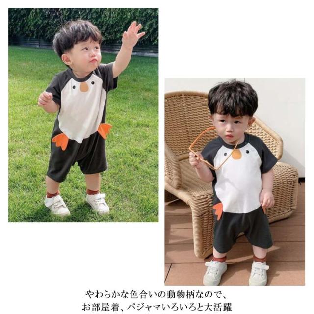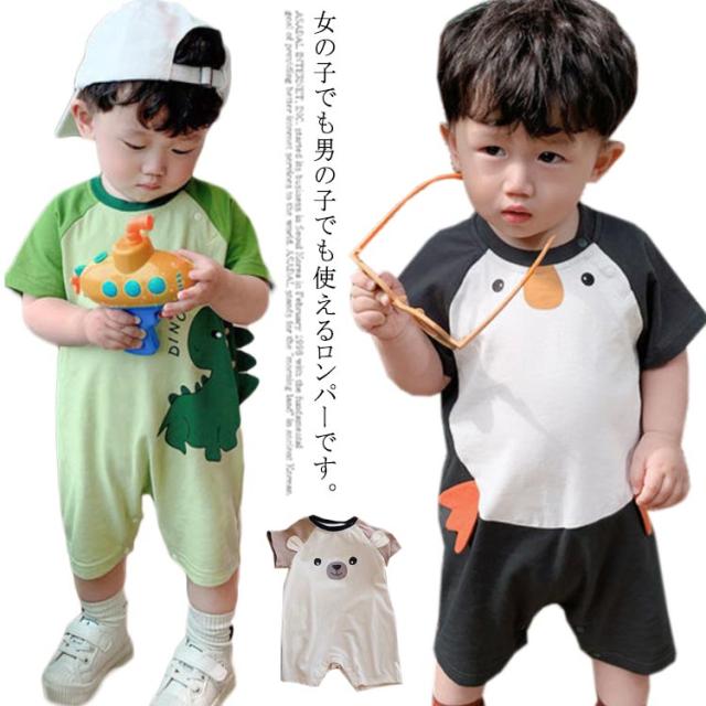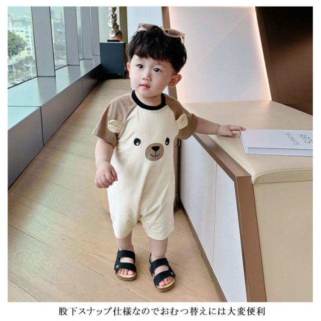 ベビー ロンパース 半袖 夏用 送料無料 カバーオール 子供服 綿 男の子 女の子 赤ちゃん 肌着 かわいい 動物柄 通気性抜群 柔らかく お昼寝 おくるみ 出産祝い プレゼント 熊