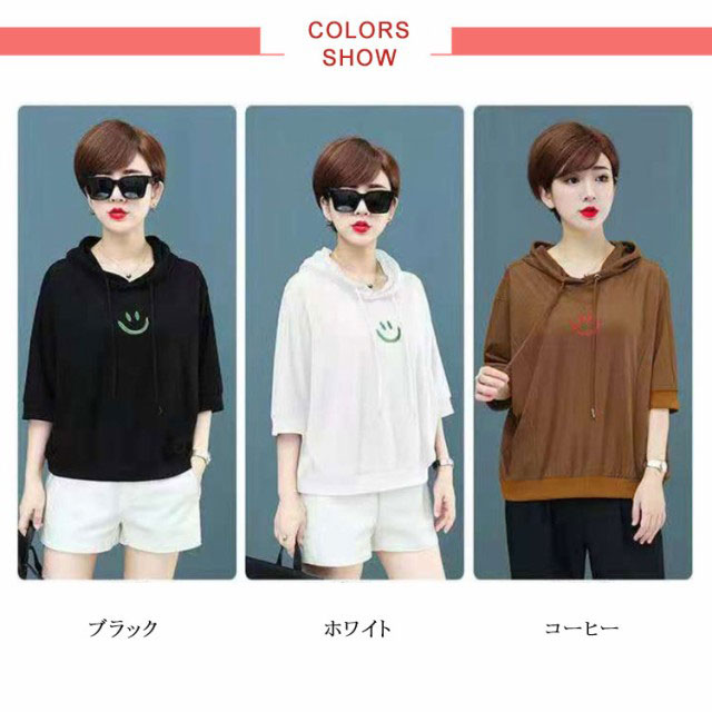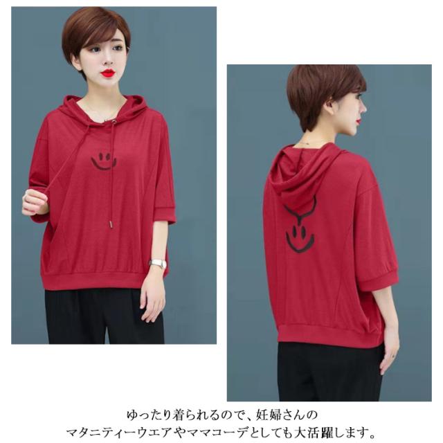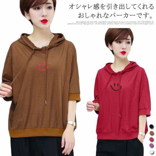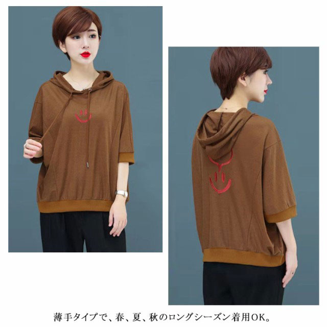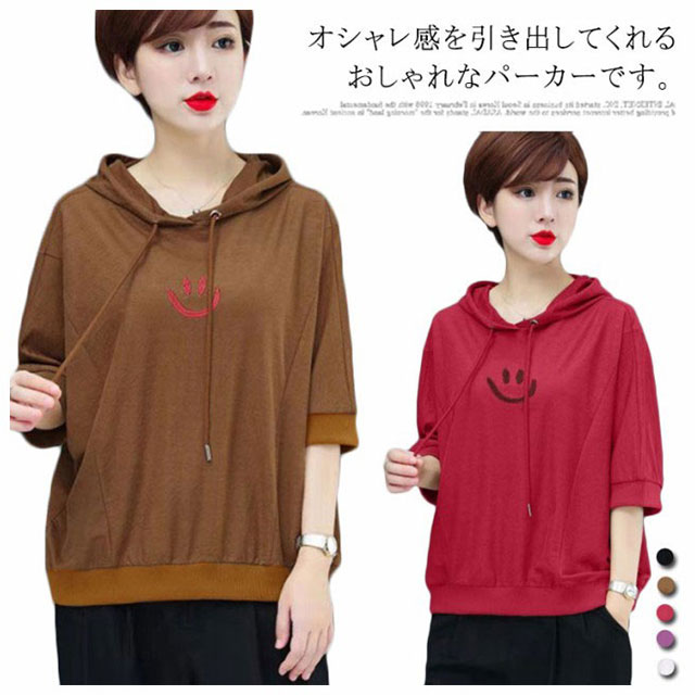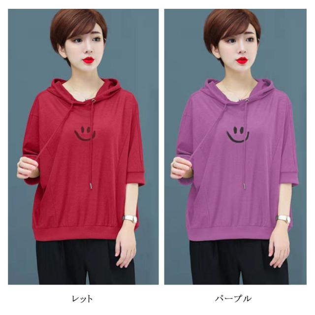 全5色×6サイズ!ゆったりバットスリーブパーカー 夏服 Tシャツ レディース プルパーカー ライトスウェット プルオーバー スウェットパーカー トップス 無地 大きサイズ 可愛い