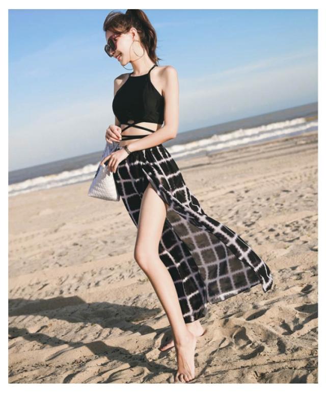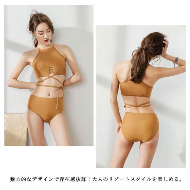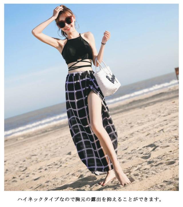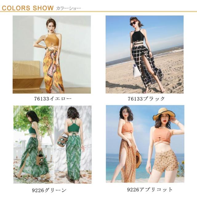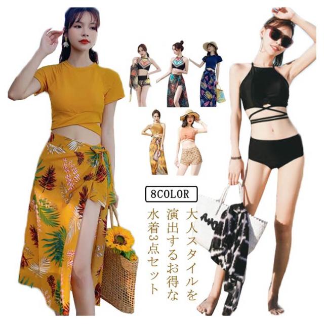 | 大人スタイルを演出するお得な水着3点セット 魅力的なデザインで存在感抜群!大人のリゾートスタイルを楽しめる。 ハイネックタイプなので胸元の露出を抑えることができます。 ウェスト部分の紐は結び方や位置など自分でお好みにアレンジが可能! 露出を抑えるスカート付き、体型カバーしつつも透け感で涼しく過ごせるのも嬉しい。 | |
