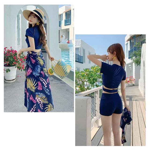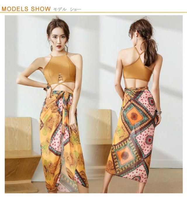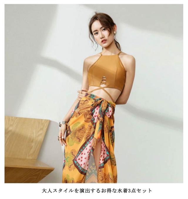 【送料無料】水着 レディース 体型カバー ビキニ ハイネック 3点セット 大人 みずぎ エスニック柄 盛れる ショートパンツ ロングスカート 露出控えめ ママ 旅行 セクシー 体型カバー水着 30代 40代 50代 セパレート オトナ女子 リゾート プレゼント 誕生日 母の日