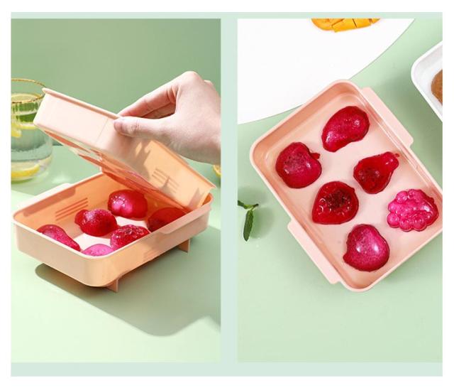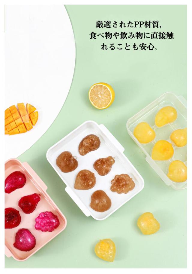 | 可愛い果物製氷皿 フタ付き、冷蔵庫の匂い移りを防げます。 厳選されたPP材質,食べ物や飲み物に直接触れることも安心。 可愛い果物のデザインは夏の飲み時間を彩りします。 ご使用後、水洗いですぐ清潔に!お手入れは楽々! | |