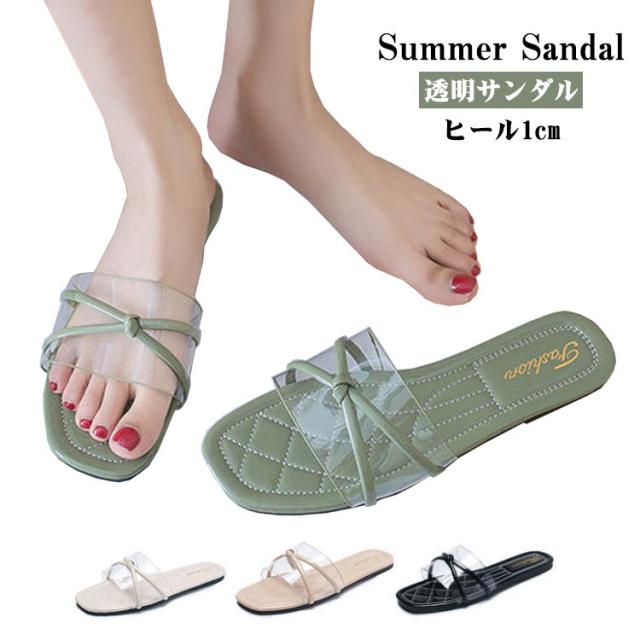 クリア ベルト サンダル リボン サンダル 1cmヒール クリアサンダル レディース ローヒール サンダル コンフォートサンダル ストラップ サンダル 透明サンダル 美脚 サンダル ぺたんこ シューズ 靴 スリッパサンダル 美脚サンダル 春夏 リゾート 歩きやすい