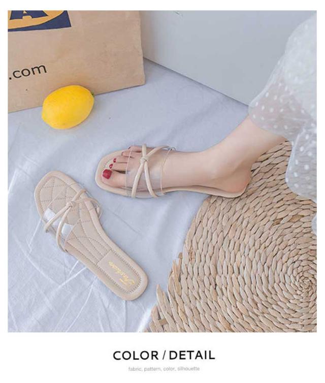| 【商品名】透明サンダル 【素材】 PU PVC 【サイズ】 ヒール:1cm 35(22.5) 36(23.0) 37(23.5) 38(24.0) 39(24.5) 40(25.0) 【特徴】爽やかな透明感でワンランク上の大人サンダルです。 クリア素材は夏らしい爽やかさ・清涼感をも添えながら上品に素肌感を楽しめます。 スリッパタイプなので、着脱しやすいのも嬉しいアイテムです◎ ぺたんこで歩きやすいから妊婦さんにもオススメ★ | |