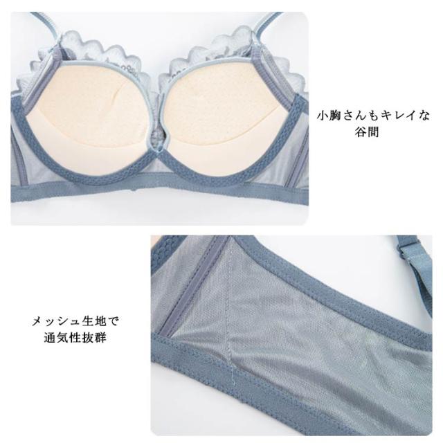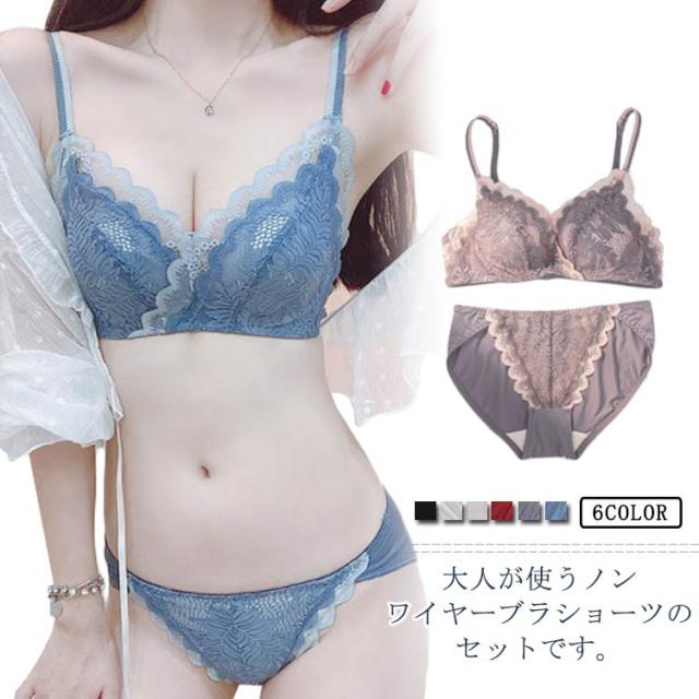 ノンワイヤー ブラ&ショーツ セット 送料無料 下着 レディース 上下セット 総レース 脇高 インナー ナイトブラ 肌着 メッシュ 通気性 小胸 育乳 美胸 かわいい