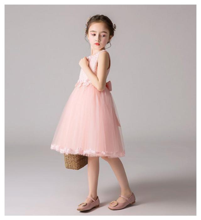 110-160CM展開 子供ドレス フォーマルドレス パーティードレス キッズ用 ワンピース ジュニア ノースリーブ 膝丈 チュール 後ろリボン 結婚式 女の子 小学生 中学生 発表会 演奏会 七五三