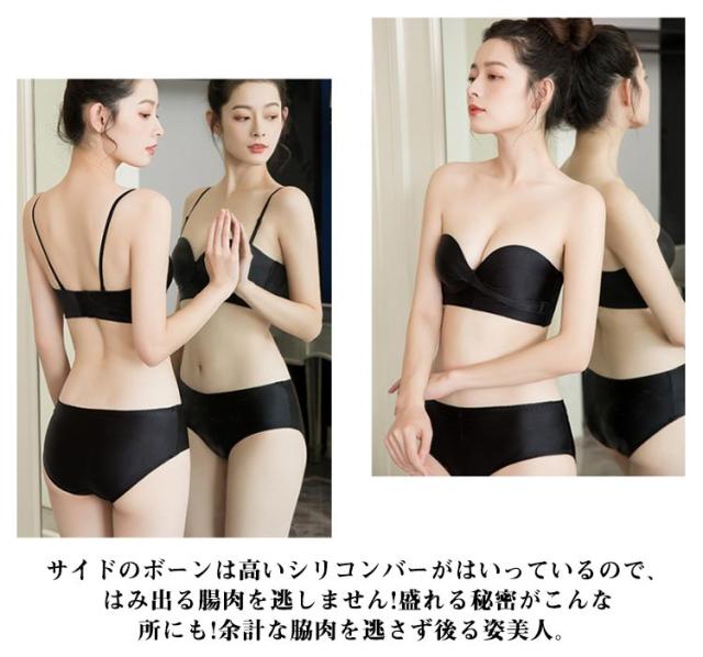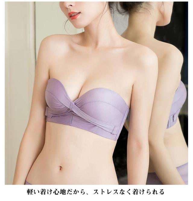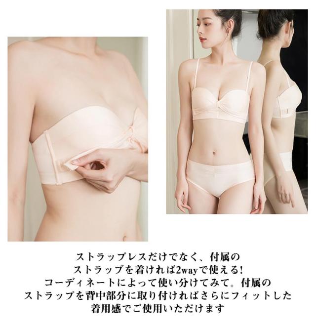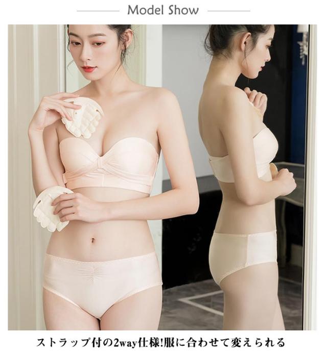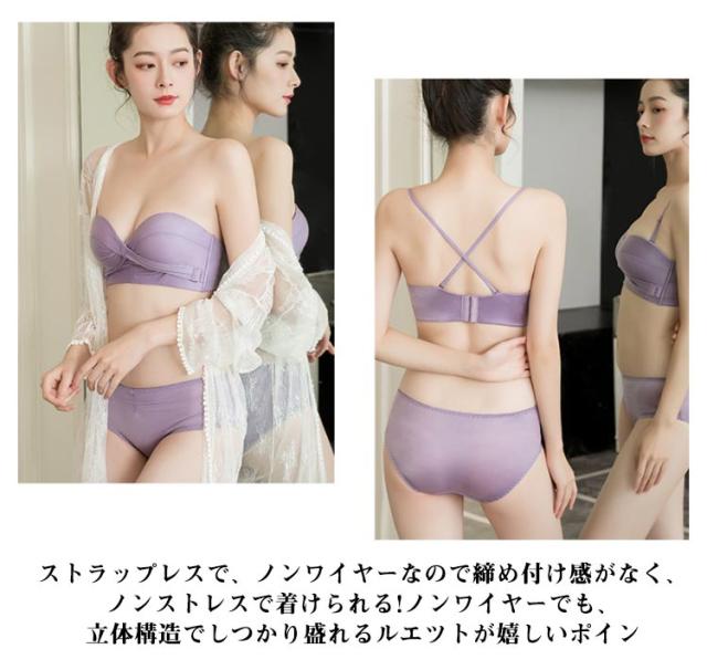送料無料 ノンワイヤー ブラジャー ノンワイヤーブラ チューブトップ ストラップレスブラ ブラジャー ショーツセット 盛れる 谷間 脇高 肩紐なし