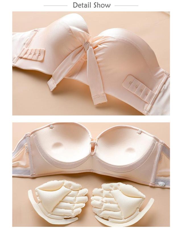 | ?シリコン線は背中をサポートして防止落ち。 ストラップレスなので、着心地がよく、締め付き感が解消。 背中でのストリップで上下側シリコン線を付いているので、着る時、落ちるなんか心配がない ?ストラップ付の2way仕様!服に合わせて変えられる ?ストラップレスだけでなく、付属のストラッブを着ければ2wayで使える!コーディネートによって使い分けてみて。付属のストラップを背中部分に取り付ければさらにフィットした着用感でご使用いただけます ?軽い着け心地だから、ストレスなく着けられる? ストラップレスで、ノンワイヤーなので締め付け感がなく、ノンストレスで着けられる!ノンワイヤーでも、立体構造でしつかり盛れるルエツトが嬉しいポイン ?脇高・幅広設計で、安定したボリューム感? サイドのボーンは高いシリコンバーがはいっているので、はみ出る腸肉を逃しません!盛れる秘密がこんな所にも!余計な脇肉を逃さず後る姿美人。 | |