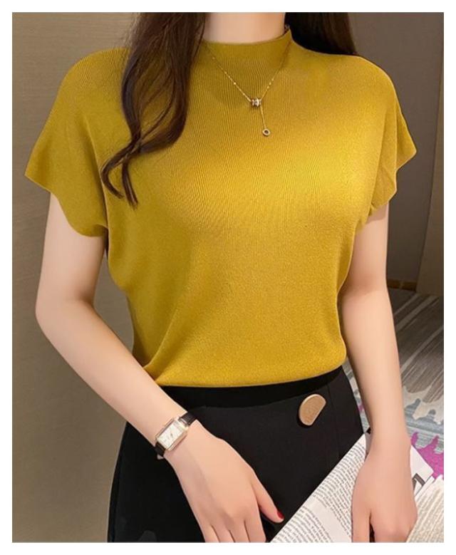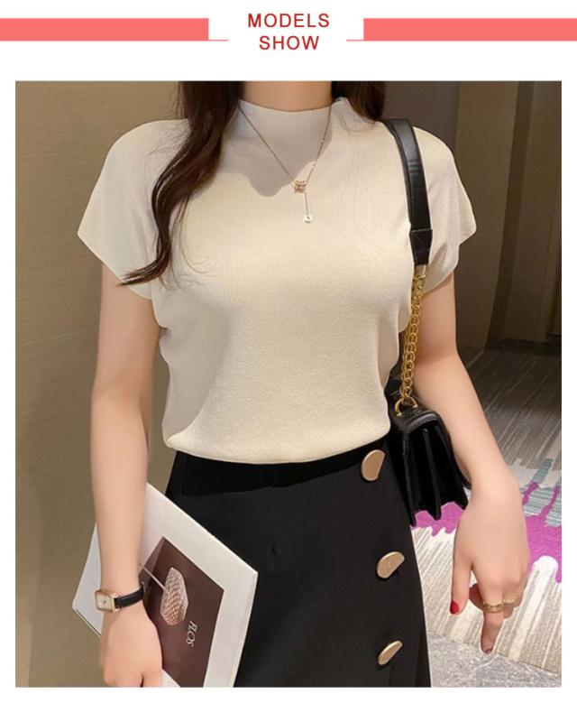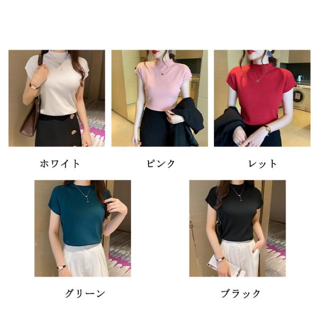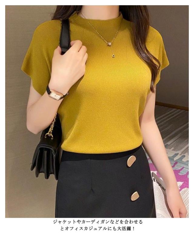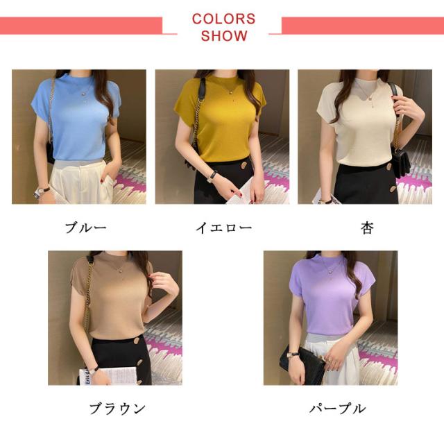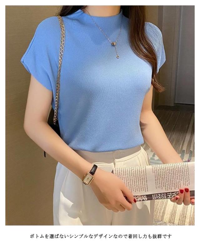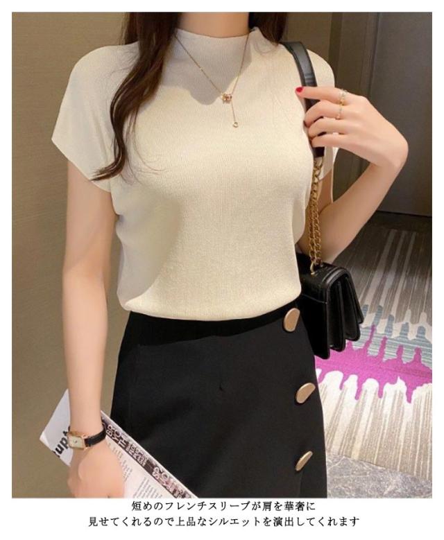 全10色 フレンチ袖ニットTシャツ レディース サマーニット トップス プルーオーバー フレンチスリーブ 無地 薄手 クルーネック 送料無料